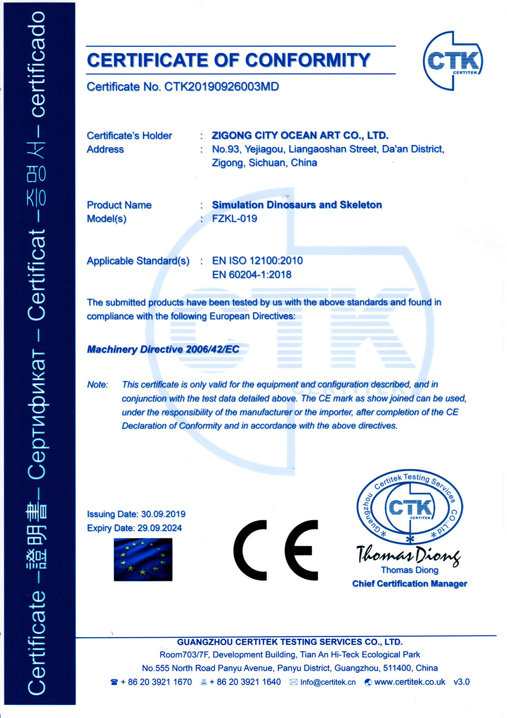 自A(ch)市大z艺术有限责d司简介自贡市大洋艺术有限责Q公司Qؓ中国恐龙展品制作基地Q成立于2009q_是专业从事恐龙化石骨架标本模型、仿真活体机器恐龙、仿真雕塑恐龙、玻璃钢恐龙、恐龙游乐场互动讑֤{展品的研制开发、出售和展览的高U技企业。ƈ在中国古生物专家的指gq行开发制作恐龙和仿真动物展品Q所制作的恐龙展品,被中国科学院鉴定为“优UU研作品”,被誉为“侏|纪”的再现者。公司占地面U?0000qxcI有一支专业研制恐龙标本模型和机器恐龙展品的职工队伍和一套具有先q性能的生产设备,q生产能力ؓ500万美元,其中U?0%的出口。我们研制和生的恐龙展品,以其造型逼真、表皮质感强、动作协调自如、组合情节科学、h(hun)格合理、售后服务佳而倍受国内外客L青睐和好评。十多年来,我们先后为美国、加拿大、阿根h(hun)、秘鲁、匈牙利、奥地利、荷兰、澳大利亚和我国的香港、台湑֜Z及北京自然博物馆、天z自然博物馆、上然博物馆、重庆自然博物馆、浙江自然博物馆、成都理工大学博物馆、太原中国煤炭博物馆、内蒙二q浩Ҏ(gu)龙博物馆、武汉中国地质大学博物馆、西峡恐龙蛋博物馆、朝阳鸟化石博物馆、河源恐龙博物馆、常州中华恐龙园、云南禄C界恐龙谷{地区的博物馆和恐龙主题公园以及人民公园制作和提供了相当数量的恐龙展品。同Ӟ先后为重庆恐龙公园、v南恐龙公园、晋江新世纪恐龙公园、番古生物博物馆、东莞古生物博物馆、西峡恐龙蛋博物馆设计和陈列布展?/div>